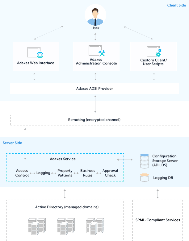 All the Adaxes magic, such as automation rules, approval-based workflows, role-based permissions, data standards enforcements, etc. is only applied when executing operations through Adaxes. Any of your existing scenarios or integrations, like HR or payroll systems, that directly interact with AD, Exchange or Office 365 won’t be affected and can co-exist with Adaxes.